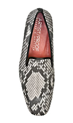 is offering their iconic slipper in exotic Python with black leather trim and sole. Wild and refined.
